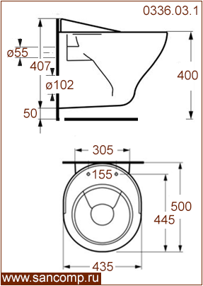 0336.03.1 Видуар - Больничный слив подвесной из керамики с горизонтальным выпуском | ||