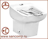 Видуары комплектуются откидной решеткой, которая может подниматься при помощи педали, системой смыва (бачок или кран), бачком для дезинфицирующего раствора со шлангом и гигиенической лейкой, смесителем настенным.